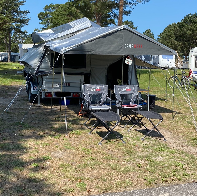…om naar een camper te kijken, ontdekten daar de CAMPWERK vouwwagen en waren meteen verkocht. We kamperen er nu al