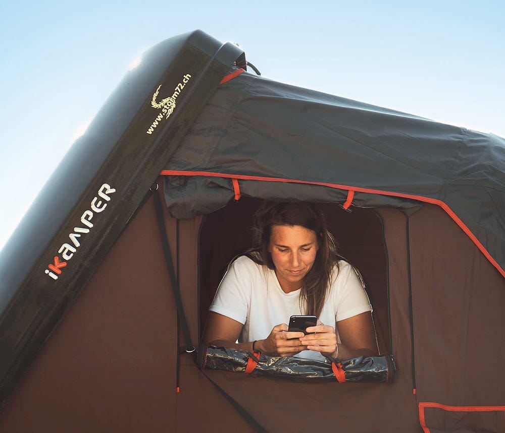 De daktent is allang uitgeklapt voor een nacht onder de sterren.