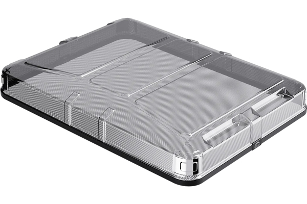 De robuuste hardshell van de daktent bestaat uit transparant kunststof. In opgevouwen toestand meet de tent ongeveer 174 x 143 cm.