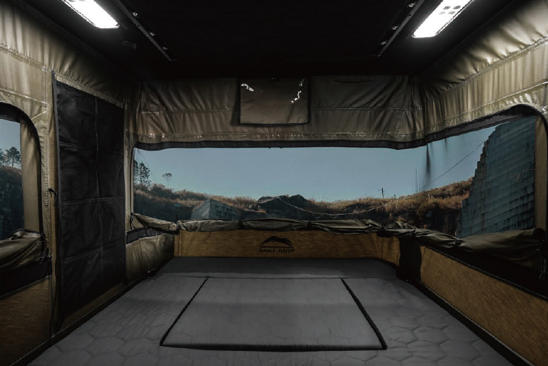 Met een gewicht van ongeveer 250 kg en zijn elektrisch uitschuifbare opbouw verandert de Wingman in seconden in een volwaardige woonruimte. Robuuste materialen, weerbestendige buitenwanden en een stabiele aluminiumstructuur zorgen voor duurzaamheid en bescherming bij elk weer. Beneden ontstaat een beschermde ruimte om te wonen of werken, boven een comfortabele ligplek met gezellige slaapondergrond – perfect voor rustgevende nachten onderweg.