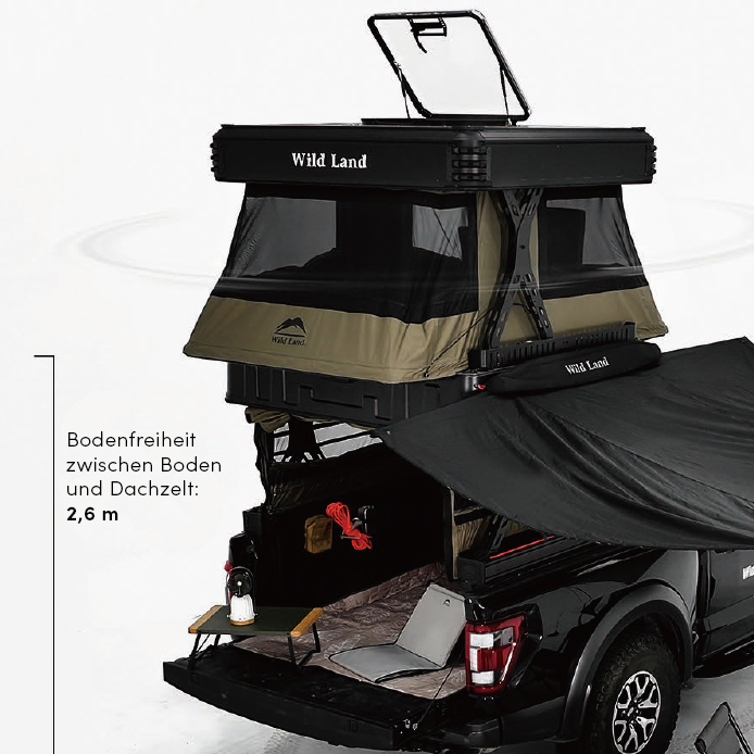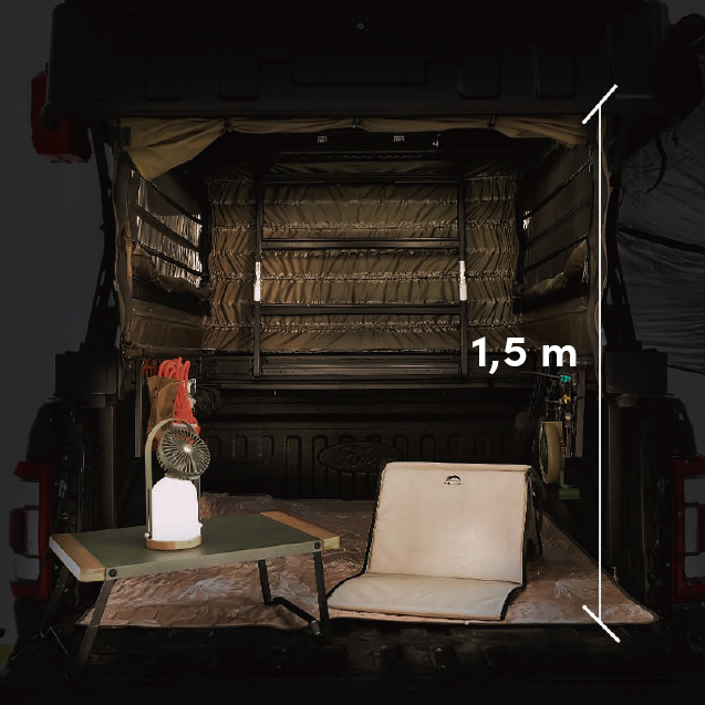 Eén klik is genoeg – en de Pickup Cabine ontvouwt zich in minder dan een minuut. De automatische opbouw, de stabiele constructie en de slim geïntegreerde uitrusting maken het de ideale begeleider voor iedereen die onderweg geen tijd wil verliezen.